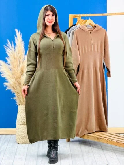 بافت ساعت شنی نیم زیپ کلاهدار رنگی ( سبز زیتونی دوبل ) – ( پک 5 عددی ) – HDR – شناسه 00202006