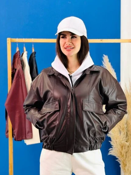 بامبر چرم خلبانی دو جیب ( قهوه ای ) – ( محصول تک ) – SB – شناسه 00225007